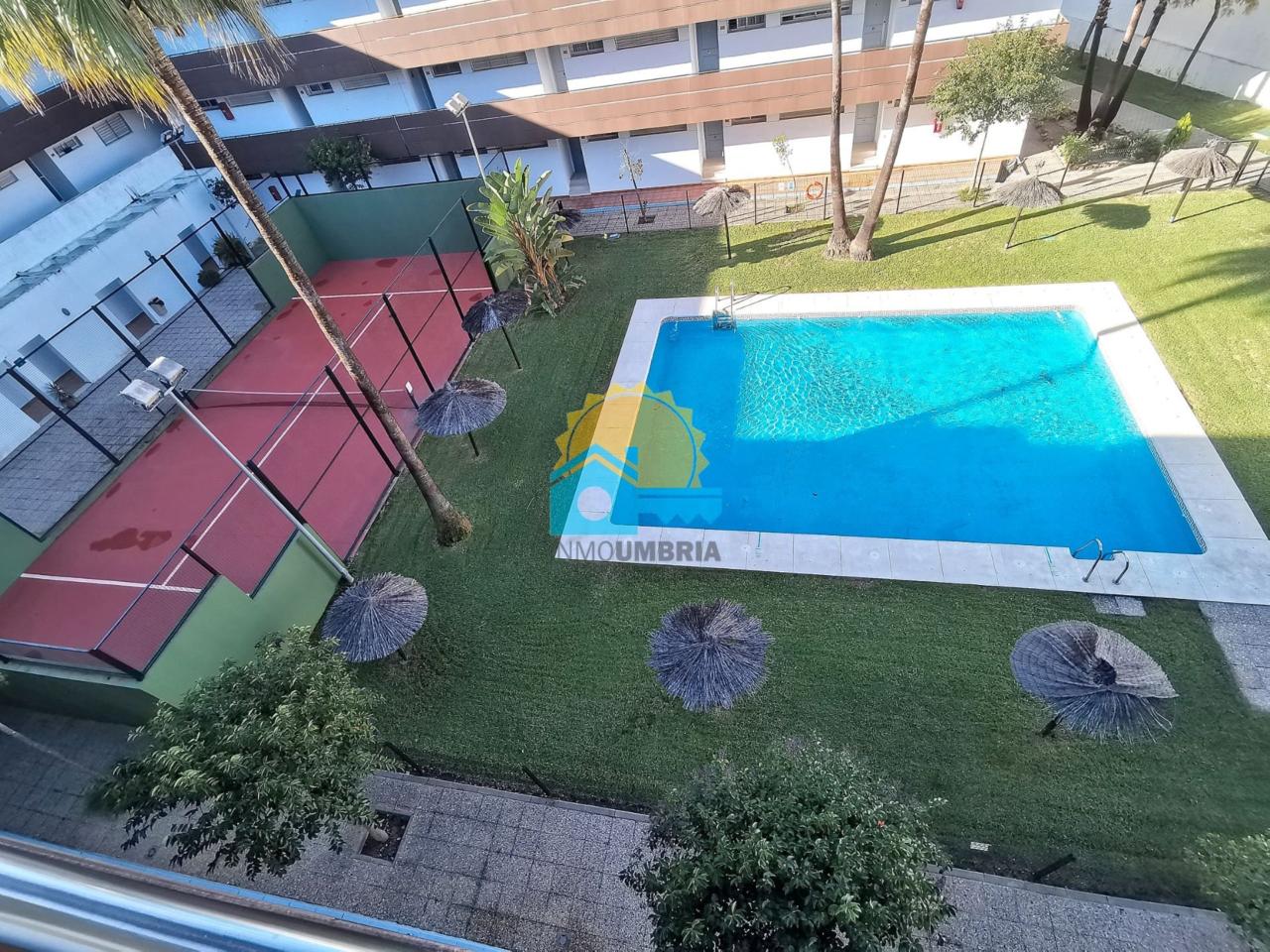 *INMOUMBRIA* VENDE en EL PORTIL piso en urbanización con piscina, zonas verdes y pistas de pádel. Distribuido en amplio salón, con aire acondicionado y acceso a terraza cubierta, lo que te permite disfrutar de ella en cualquier momento del año, dos dormitorios con armarios empotrados, cuarto de baño con plato y columna de ducha, y cocina independiente totalmente equipada. El inmueble se encuentra en una tercera planta de edificio con ascensor, en perfectas condiciones para entrar a vivir o empezar planear tus vacaciones de verano sin preocuparte del aparcamiento, ya que incluye plaza de garaje y trastero en el mismo edificio incluidos en el precio. ¡No te lo pienses y ven a verla! No dude en visitarla y llámenos. Estamos en calle Rafael López N. º 1 de Huelva, también podemos atenderle en llamada o WhatsApp al e-mail: / o bien al numero de teléfono: en el precio de venta no están incluidos los honorarios profesionales de intermediación ni los gastos que originan toda compraventa. Si lo estima oportuno, podemos facilitarle una estimación al detalle. estos gastos corren por cuenta del comprador. La información publicitada es meramente informativa, pudiendo ser contrastada con catastro, con la escritura pública o con la correspondiente nota registral si así lo solicita. El anuncio podría estar sujeto a posibles errores, cambios de precio o retirada del mercado. Para los m2 exactos y posibles reformas recomendamos realice una tasación oficial y cuente con el asesoramiento de un arquitecto o un profesional acreditado del sector.